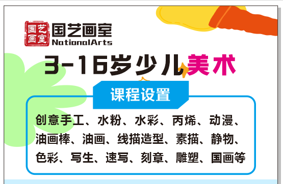 创意手工、水粉、水彩、丙烯、动漫油画棒、油画、线描造型、素描、静物、色彩、写生、速写、刻章、雕塑、国画等