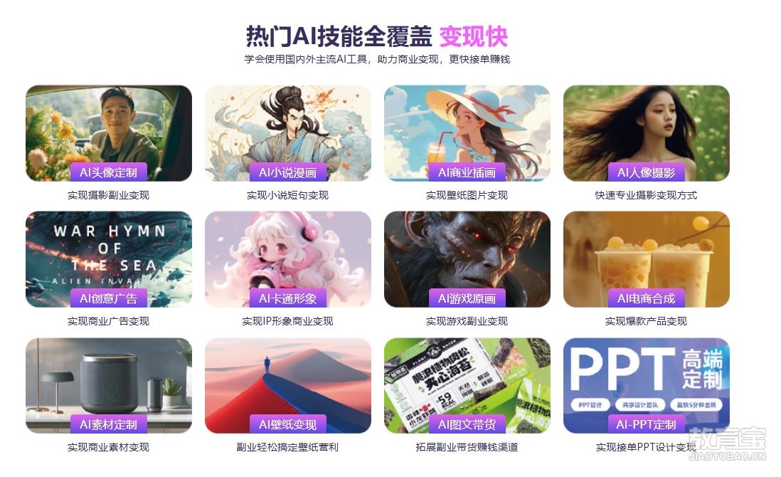 适合零基础学员学习的AI变现课程,旨在为小白用户构建一套通俗易懂的变现体系,能够利用AI人工智能技术实现变现,开启自己的第二职业或副业